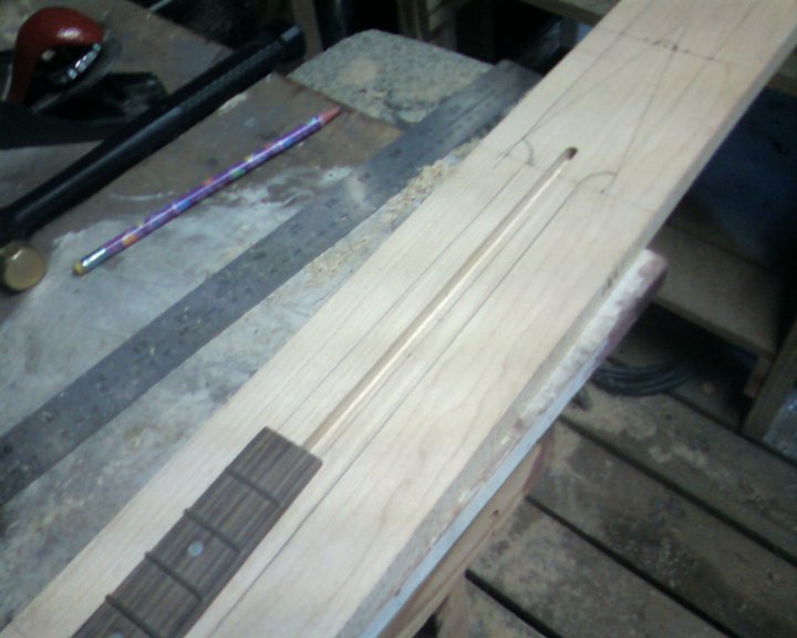 The neck is flat just like on a Fender headstock, as far as I know this is the first time this is used on an electric balalajka, one can not say other than that it looks great. Worth mentioning is perhaps that he used a truss rod.